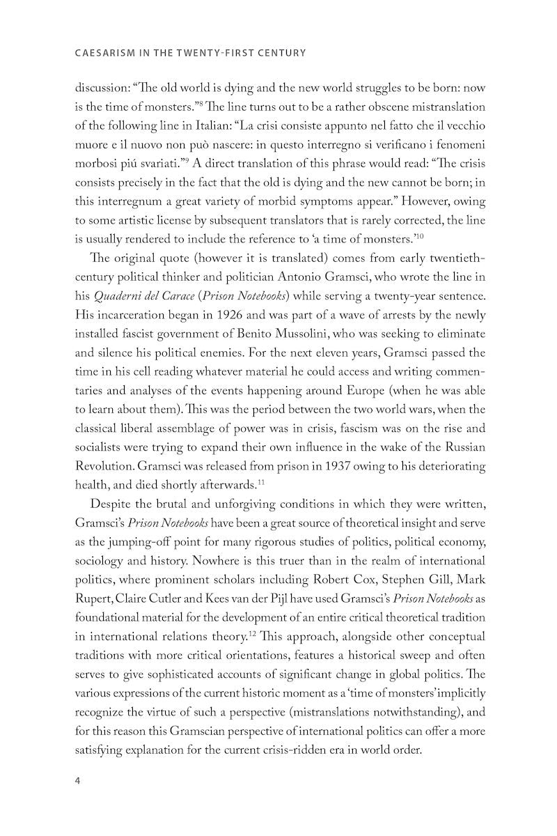 Caesarism in the 21st Century is an essential text for the critical scholar of international relations and will provide the definitive link between Gramsci’s political thought and our understanding of populism for years to come.